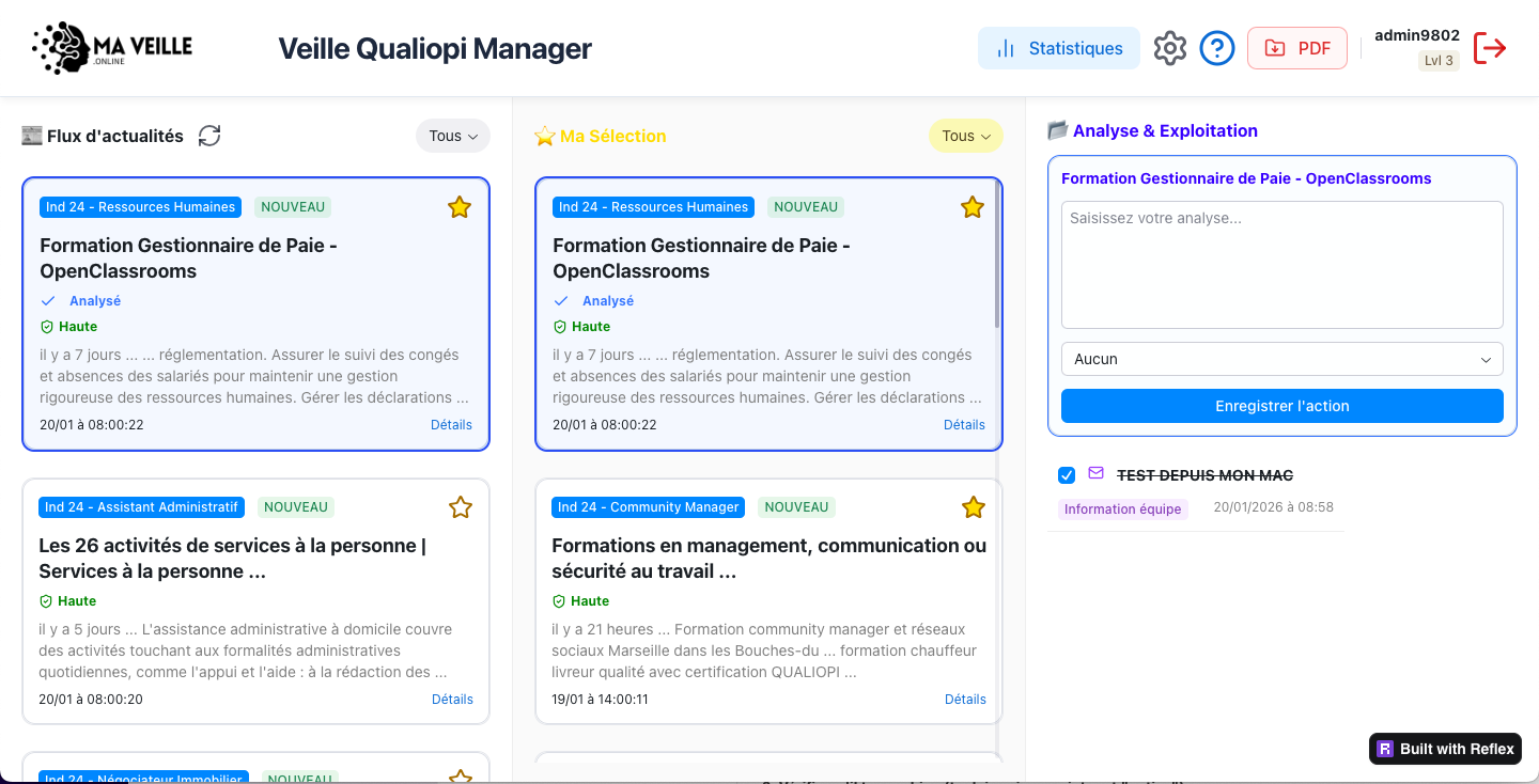 L’outils de veille est spécialement conçu pour vous permettre d’accomplir les veilles rendues obligaoires par les indicateurs 23, 24 et 25 du référentiel Qualiopi v9.0.