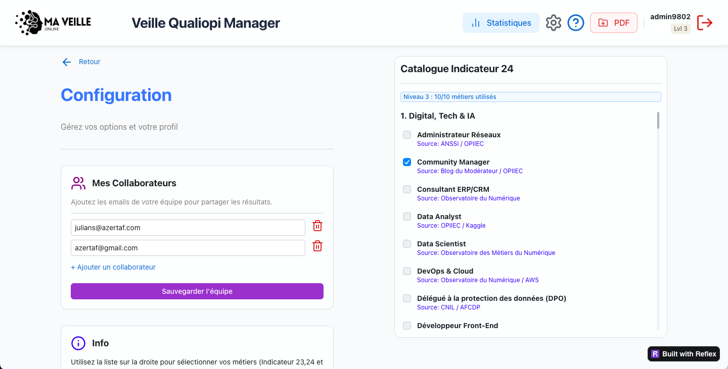 Elle est idéale pour le formateur indépendant qui doit gérer seul sa conformité, comme pour le Responsable Qualité qui doit centraliser et diffuser l’information à toute une équipe. Si vous cherchez à transformer la corvée des indicateurs 23, 24 et 25 en une formalité administrative simple et sécurisée, cet outil est fait pour vous.