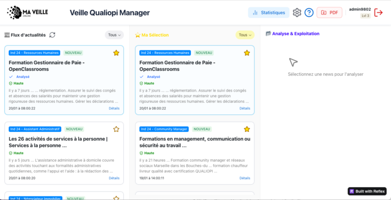 L’outils de veille est spécialement conçu pour vous permettre d’accomplir les veilles rendues obligaoires par les indicateurs 23, 24 et 25 du référentiel Qualiopi v9.0.